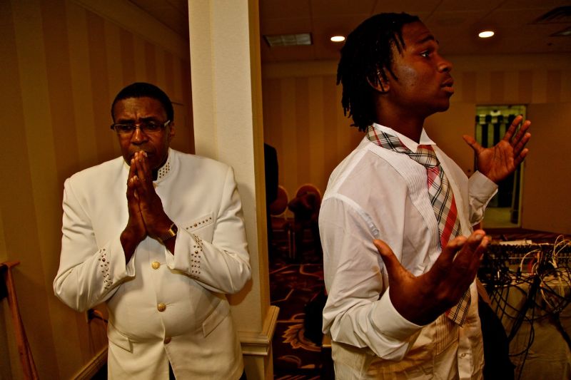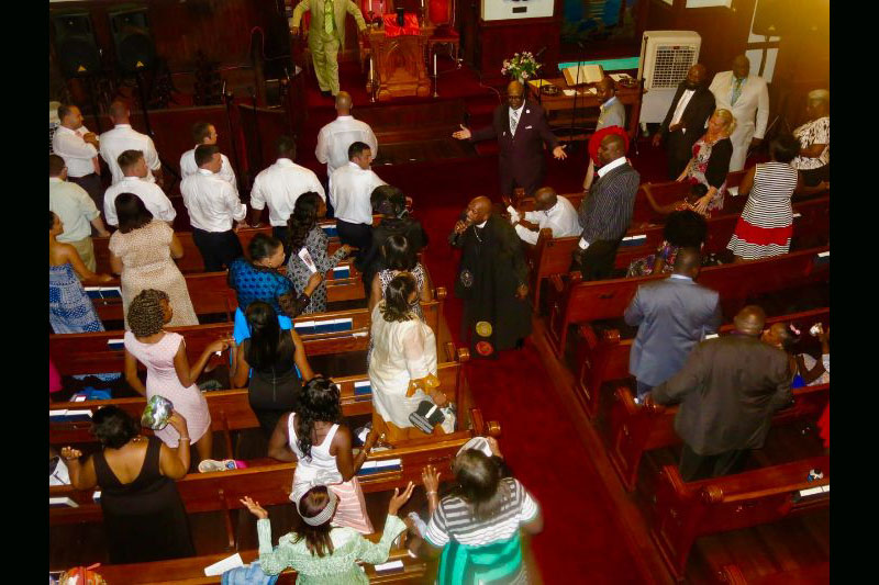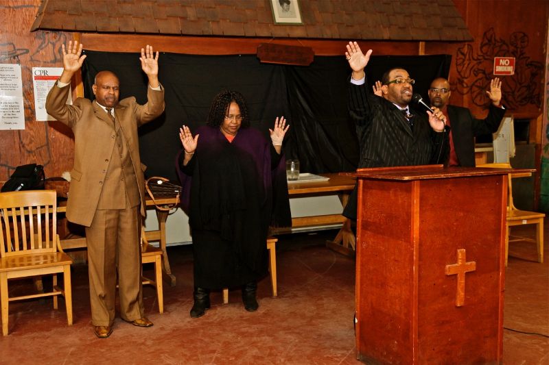 God’s House and its embrace of racial democracy may be linked to his roots that date back to founding members of the renowned revival at 312 Azusa Street in Southern California at the dawn of the twentieth century. This revival actually challenged the white supremacy or "Anglo-Saxon Israelism" of Charles F. Parham by merging Pentecostalism with championing racial equality that included blacks, Chinese, Native Americans, Spanish, and other racial groups in California. According to Iain MacRoberts, the Azusa Revival understood spirit baptism to include the "power to draw all peoples into one Church without racial distinctions or barriers." 1 In this sense, Bishop Dove’s embrace of multiculturalism is linked to his cousin, Edward Lee, who transformed his house into the first property to house this bourgeoning Pentecostal revival before they occupied the vacant and former AME chapel on Azusa Street. The Lees allowed the one-eyed preacher, William J. Seymour, to sleep on their couch after he was booted out of the Holiness Church for his views on speaking in tongues. True to his tradition, Bishop Dove believes in the gifts/baptism of the Holy Spirit that is a crucial characteristic of Pentecostalism. Although God’s House is nondenominational, Bishop Dove believes that people are baptized with the Holy Spirit and possess the gifts of healing, prophecy, and speaking in tongues as the early pioneers of Pentecostalism also believed. Similar to Elder Lucy Smith’s healing services in post-World War I Chicago, Bishop Dove has healed people of many ailments in Rhode Island. His wife healed him and brought him back to life through prayer, to the medical doctors’ bewilderment when he collapsed and his heart stopped.