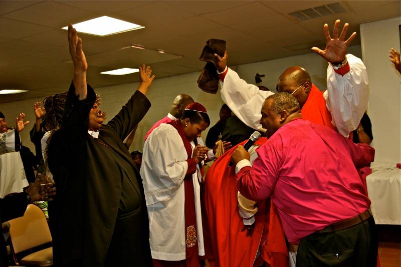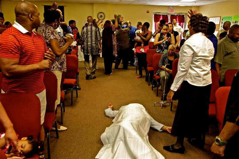 One of Providence's vibrant religious communities is the House of Manna on Academy Avenue. Located in a grey brick storefront next to an All-State Insurance office and across the street from a Walgreens, the House of Manna has been a beacon of hope for the Providence community well over a decade. Its storefront structure is reminiscent of a historical period when blacks migrated from rural to urban environments, and transformed commercial stores into sacred places of worship in the first half of the twentieth century. The cream-color walls, olive green carpets, and crimson cushioned chairs that make up the three thousand square foot storefront's interior forms the backdrop where congregants from all walks of life seek a direct encounter with the Spirit of God. Similar to the Protestant Restoration movements of nineteenth-century America, the House of Manna seeks to embody the one true church first exhibited when the Spirit of God fell on the disciples and followers on the day of Pentecost (Acts 2). According to the House of Manna's leader, Apostle Robert Robinson, Pentecostalism is not a denomination, but a movement that seeks to usher in the "Kingdom of God."